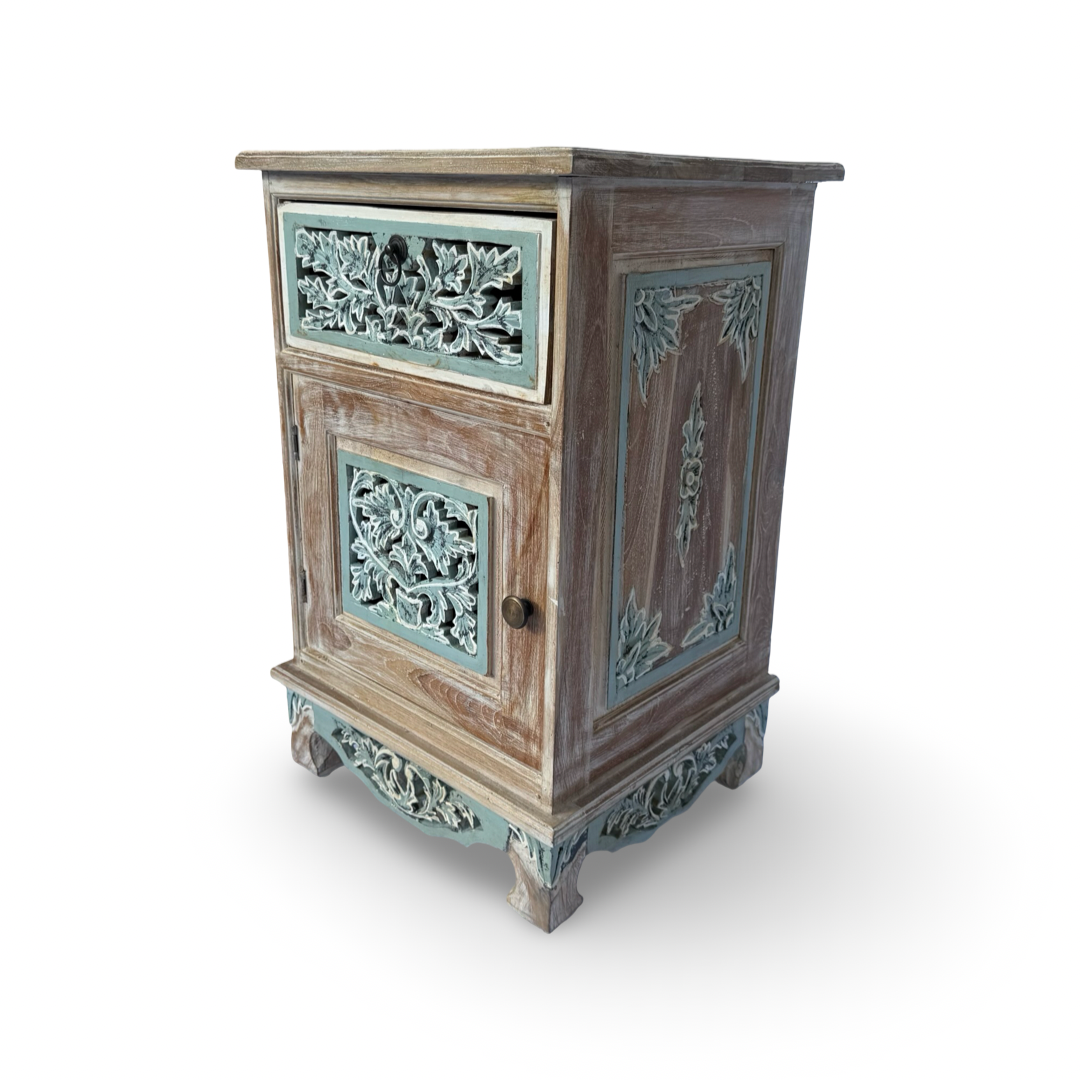 Mesa de noche tallada de Indonesia Ref.0406.5-25