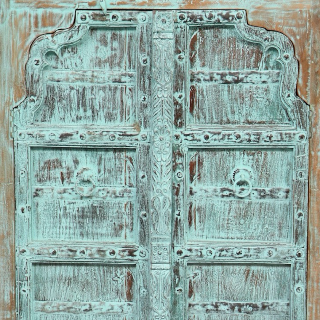 Armarios elaborados a mano en la India, fabricados en madera maciza y decorados con detalles tallados que hacen de cada pieza una obra única. Sus acabados envejecidos aportan carácter, calidez y un estilo atemporal.