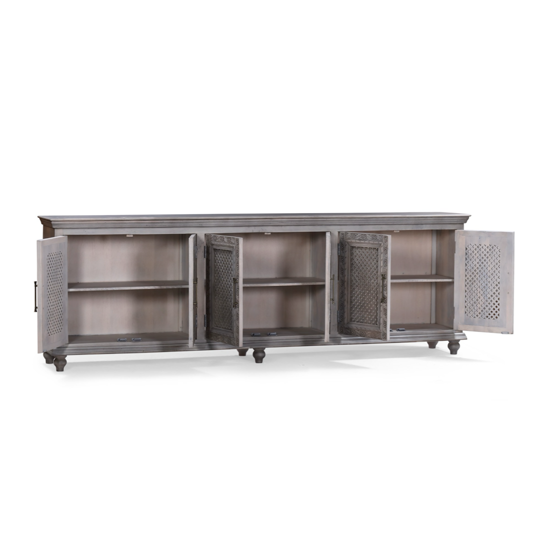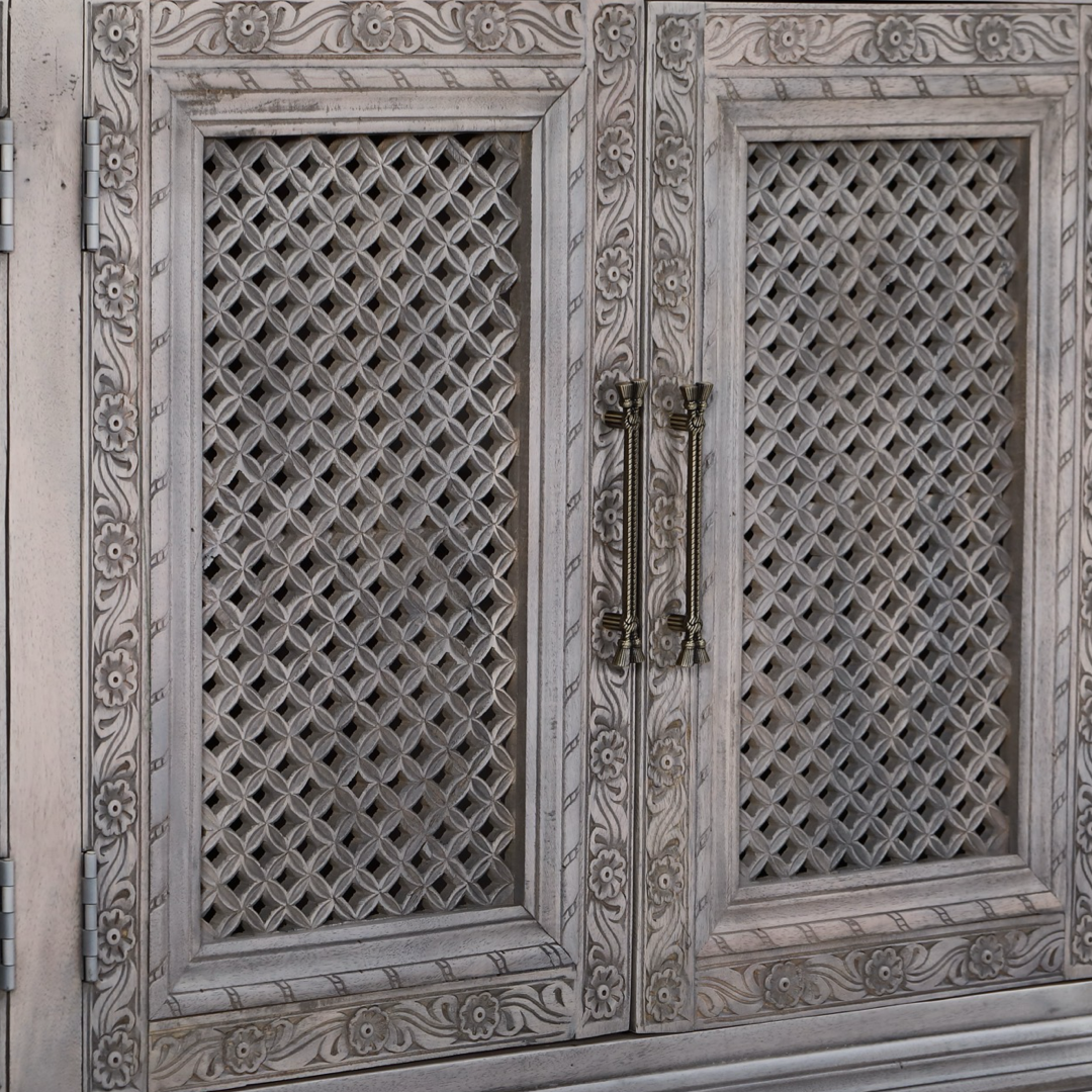 Bifes elaborados a mano en la India, en madera maciza y con tallas artesanales que hacen de cada pieza algo único. Combinan carácter decorativo y funcionalidad, ideales para guardar vajilla, textiles o piezas especiales.