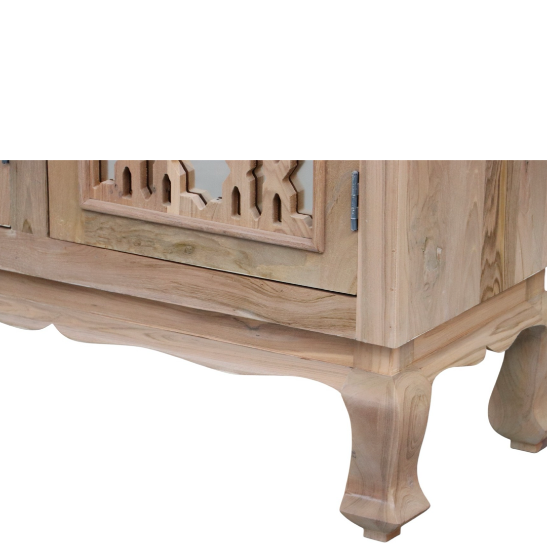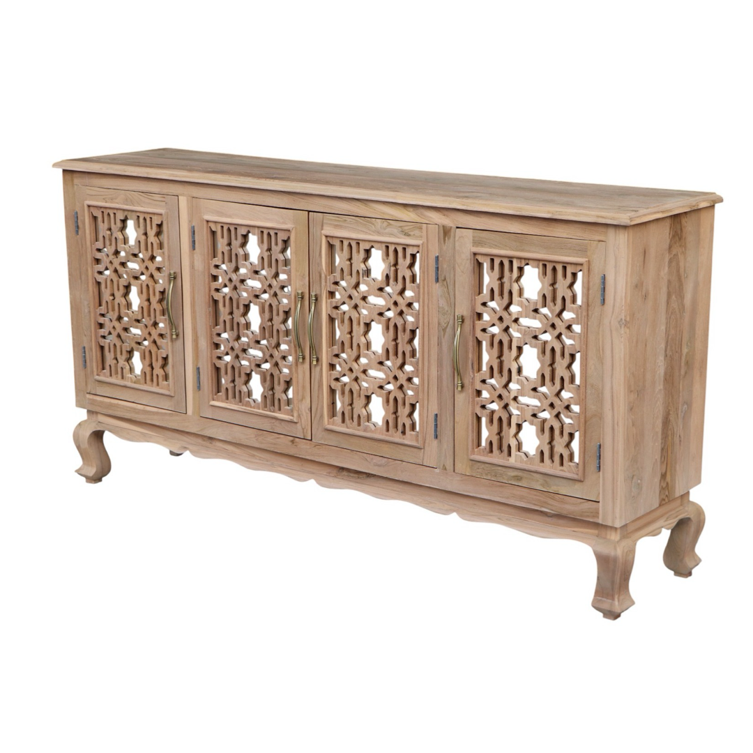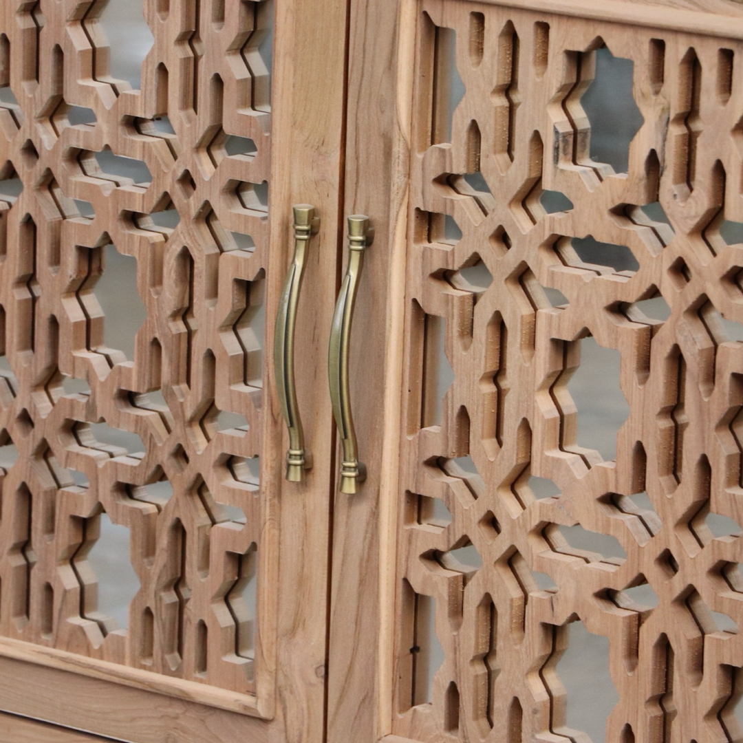 Bifes elaborados a mano en la India, en madera maciza y con tallas artesanales que hacen de cada pieza algo único. Combinan carácter decorativo y funcionalidad, ideales para guardar vajilla, textiles o piezas especiales.