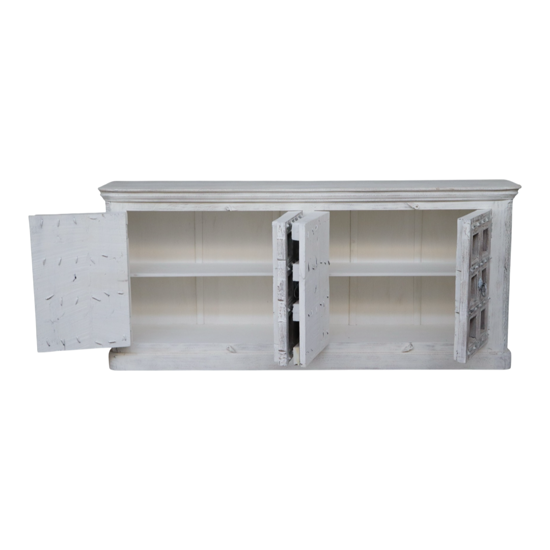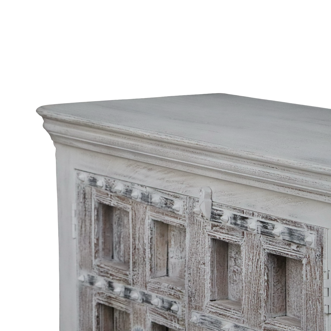 Bifes elaborados a mano en la India, en madera maciza y con tallas artesanales que hacen de cada pieza algo único. Combinan carácter decorativo y funcionalidad, ideales para guardar vajilla, textiles o piezas especiales.