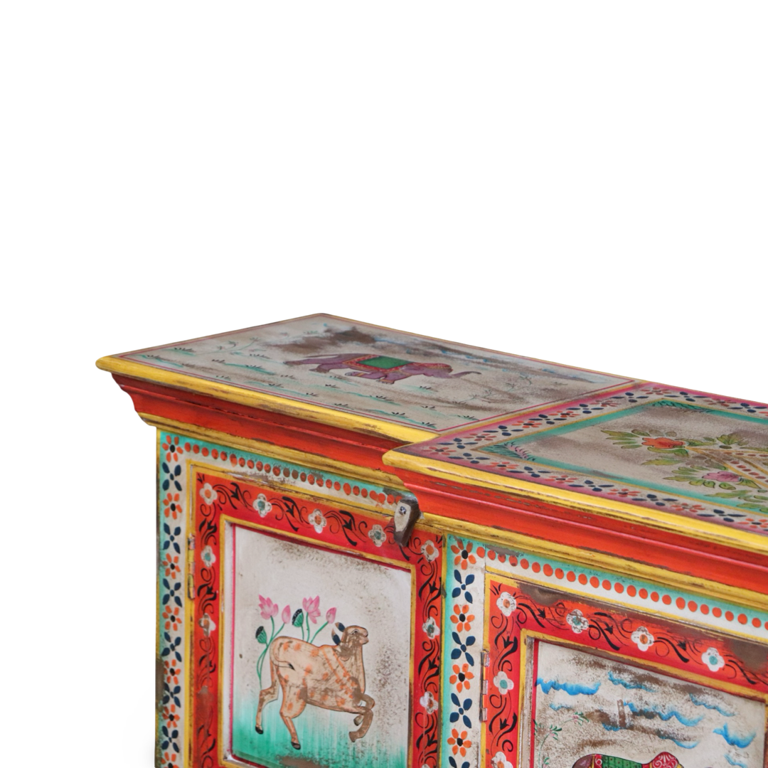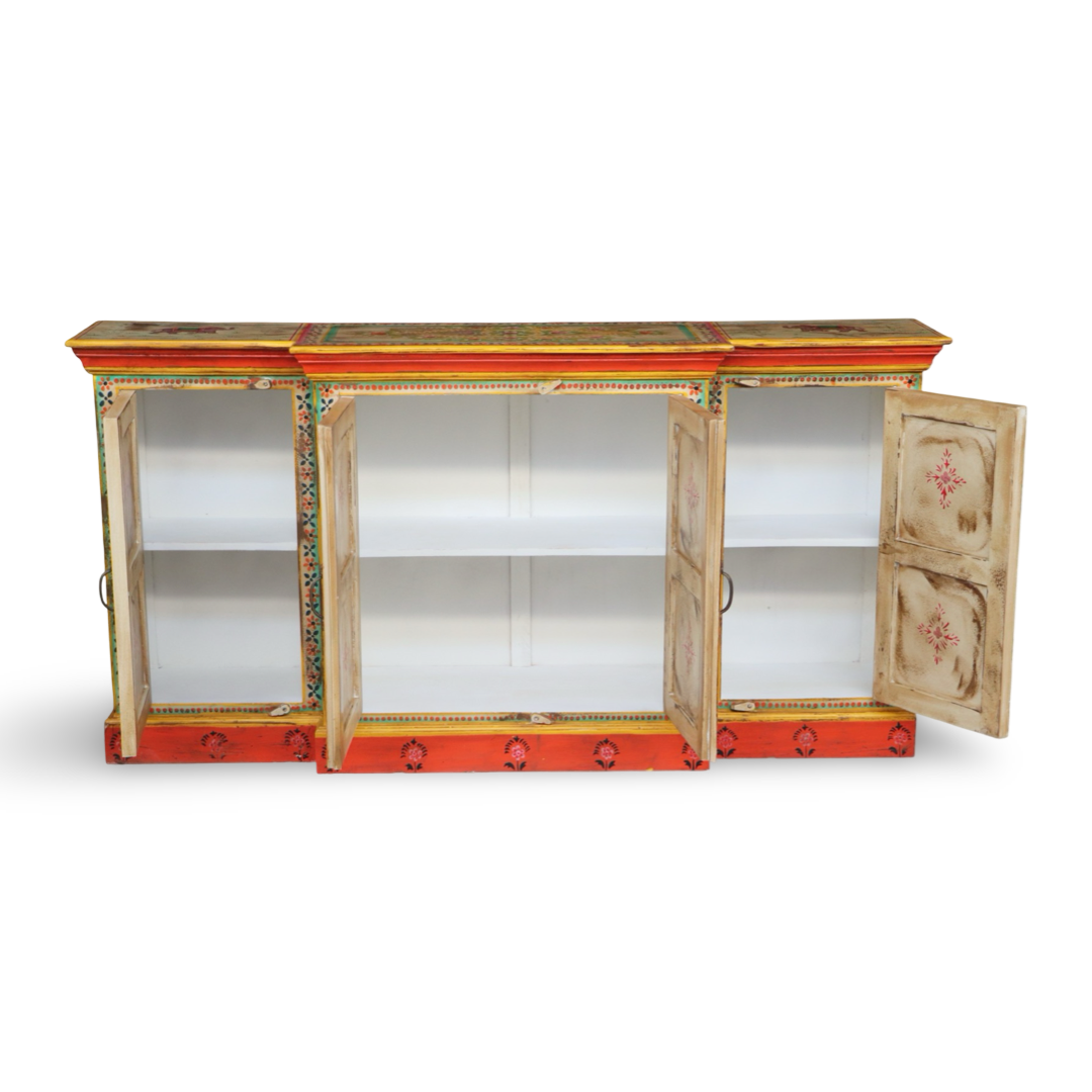 Bifes elaborados a mano en la India, en madera maciza y con tallas artesanales que hacen de cada pieza algo único. Combinan carácter decorativo y funcionalidad, ideales para guardar vajilla, textiles o piezas especiales.