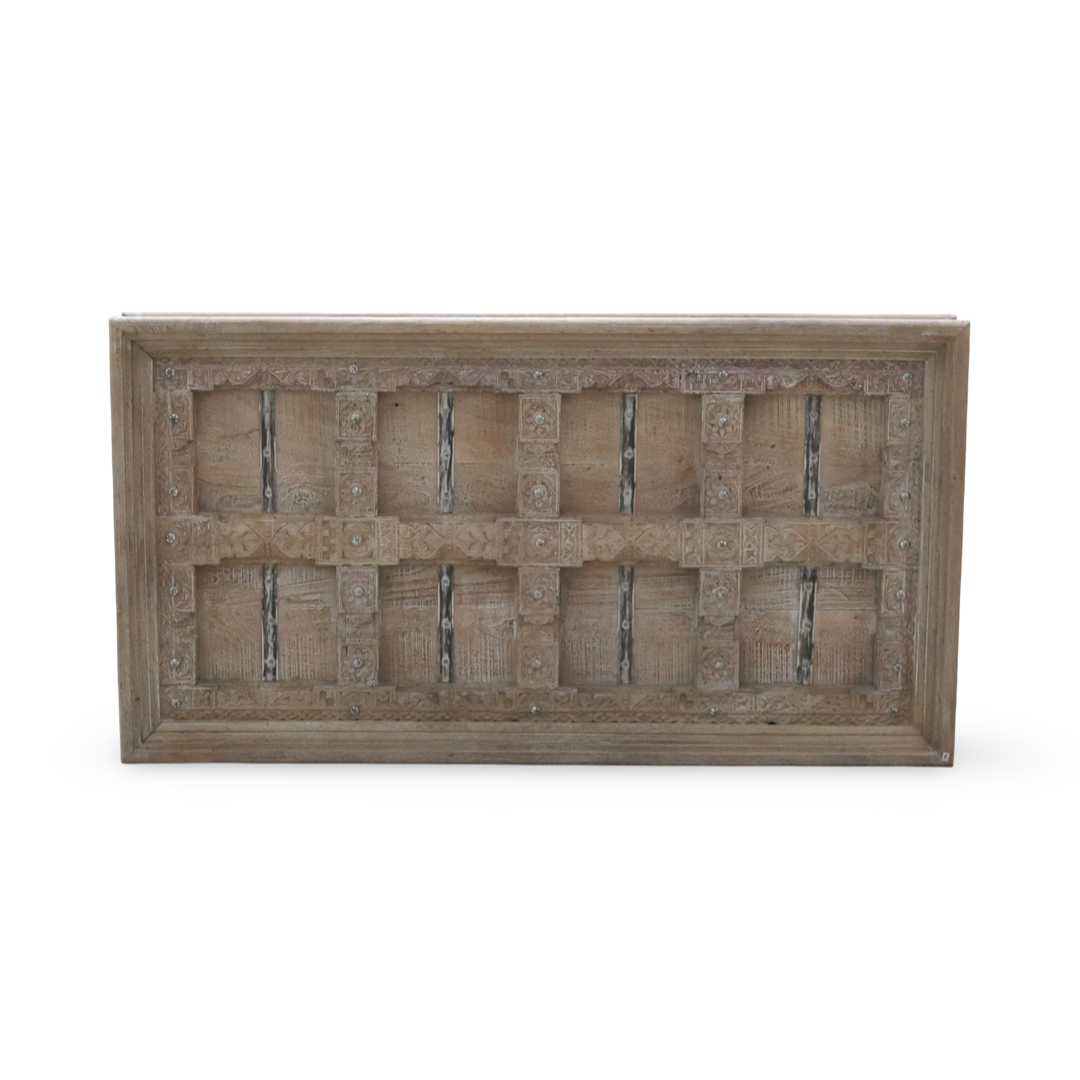 Mesas de centro elaboradas a mano en la India, en madera maciza y con detalles tallados que resaltan el trabajo artesanal. Cada pieza presenta acabados envejecidos que aportan carácter y calidez al espacio.